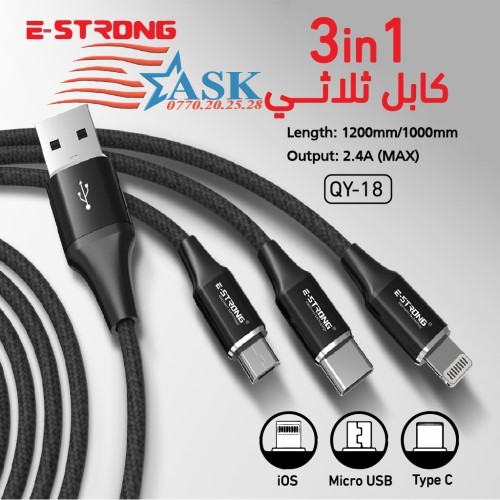 REF:KY0008…CABLE MULTI USB 1200 MM A CHARGEMENT RAPIDE 3IN1…E-STRONG-QY-05